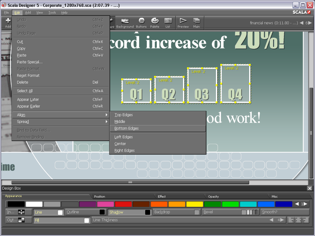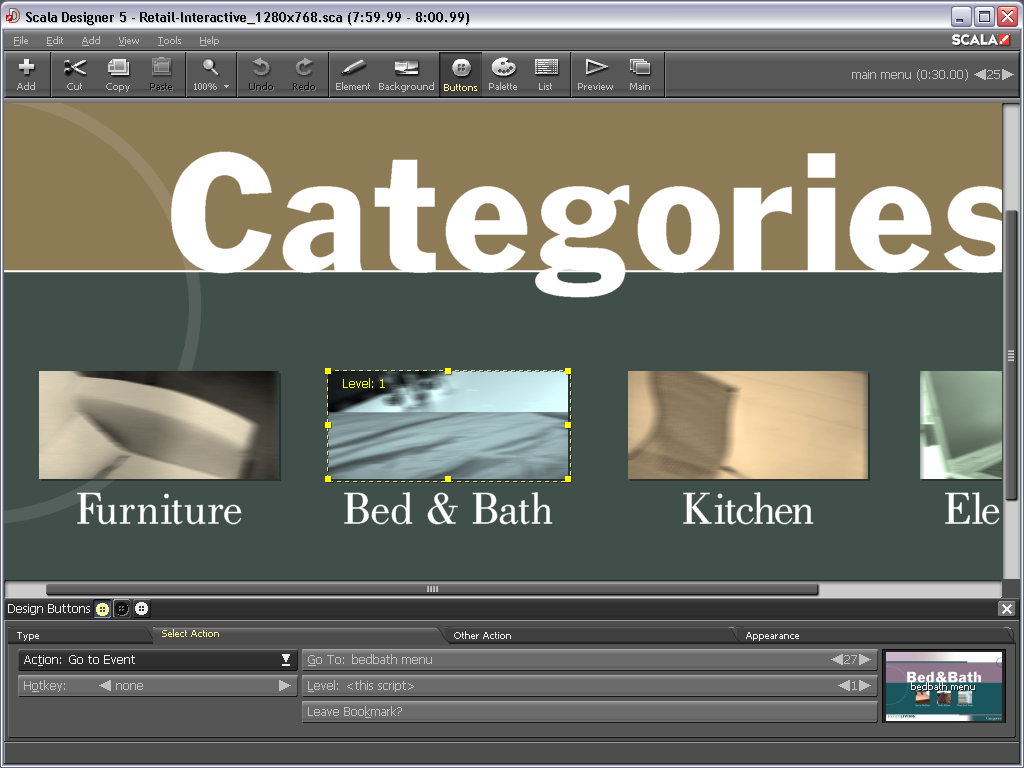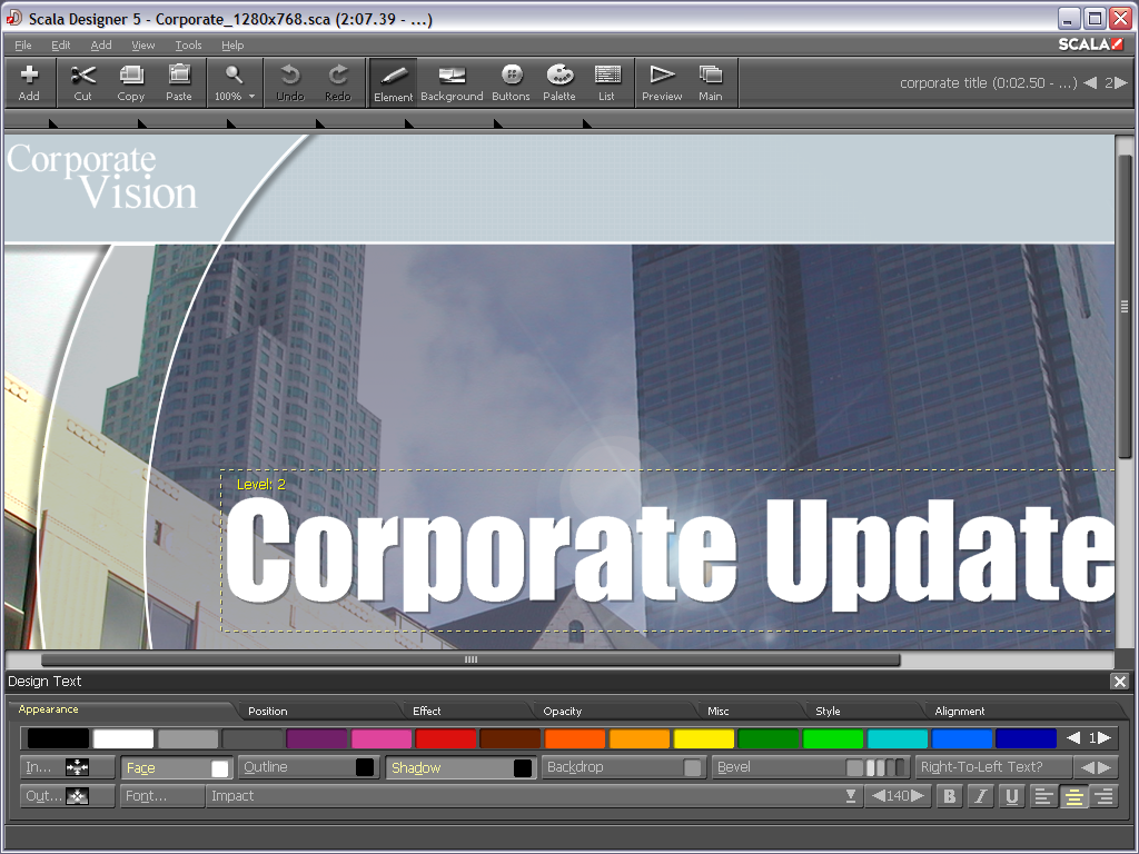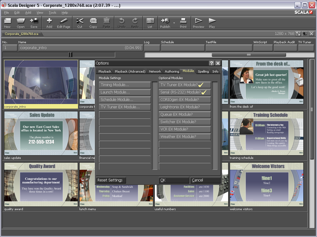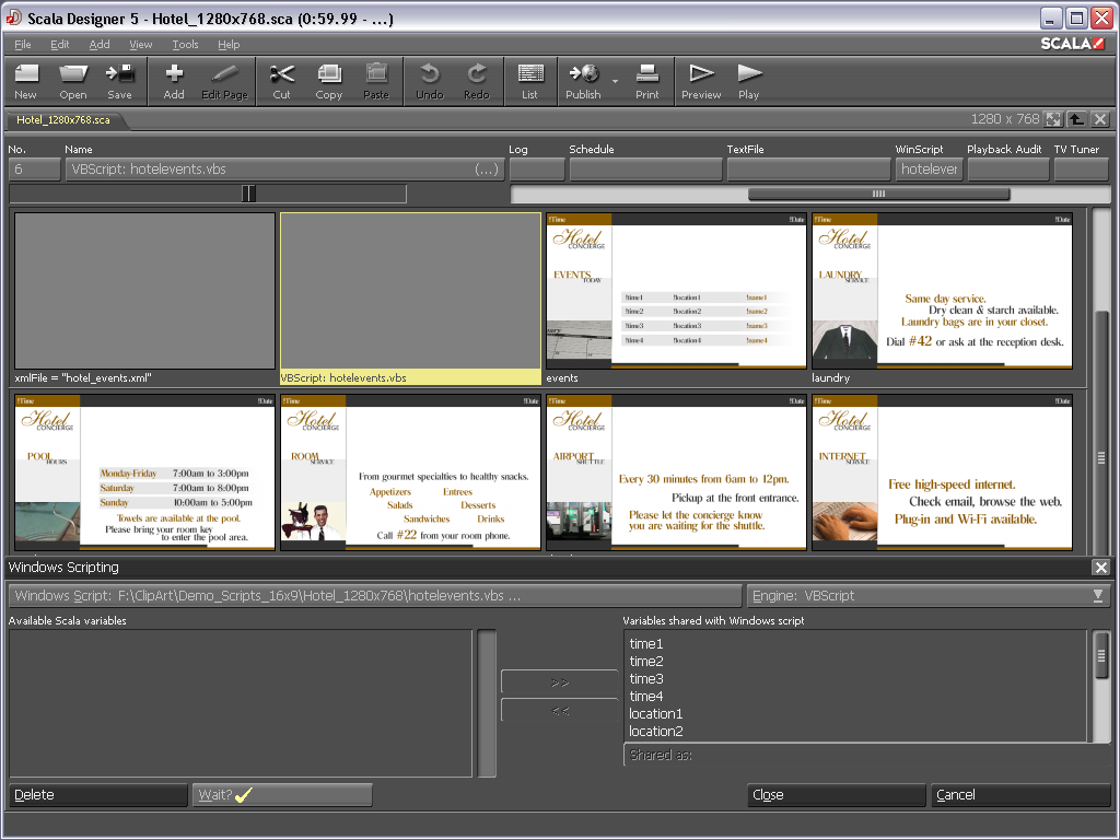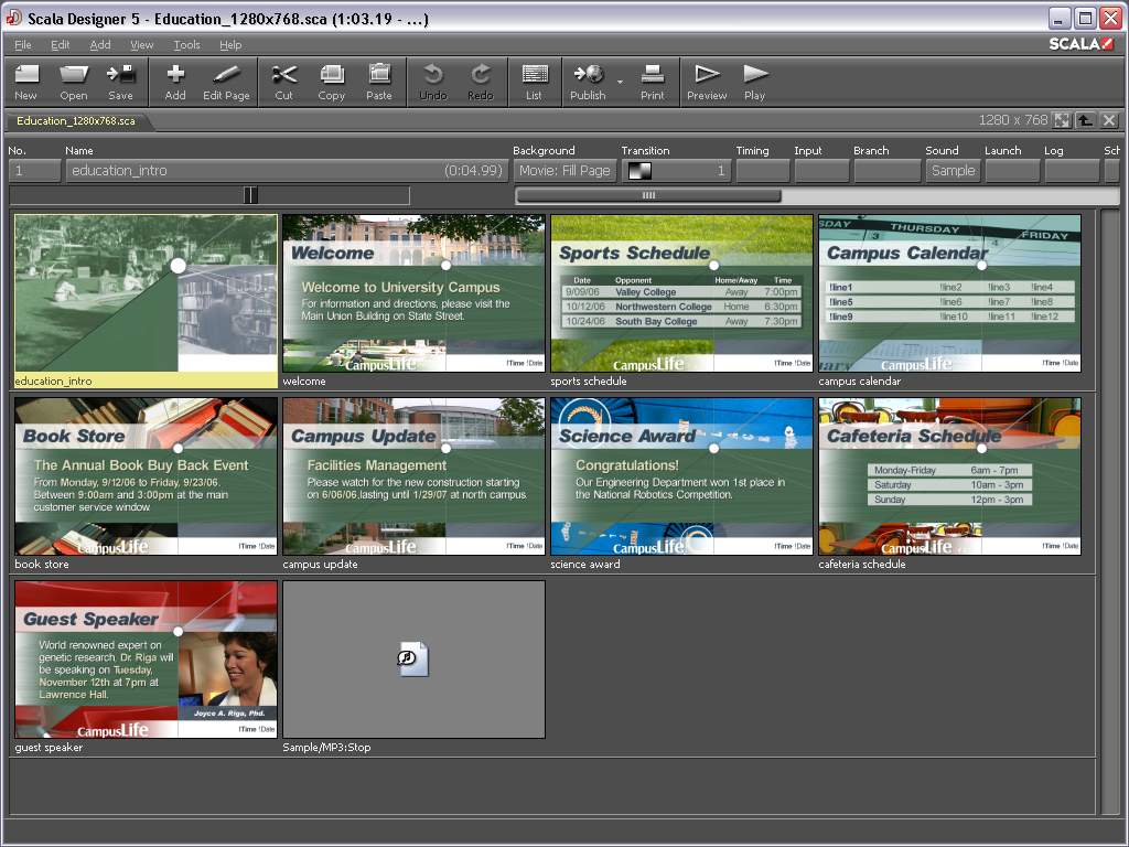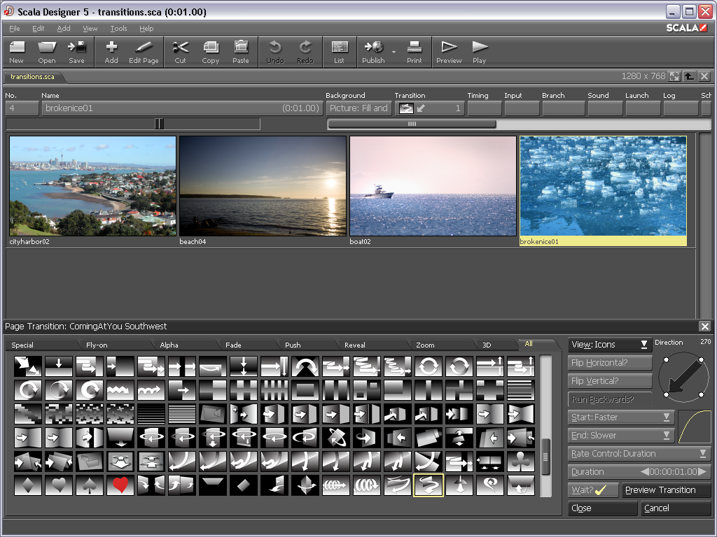 Amazing Transitions - Designer allows you to take advantage of hundreds of smooth, full-screen effects and transitions built into the Scala playback engine.