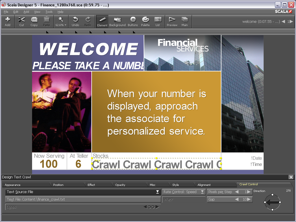 Scala Designer digital signage software was created to help marketers produce polished, professional digital signage content at all levels. The intuitive interface makes it easy to combine elements such as text, images, graphics, video, sound and animation for the ultimate engaging content. Scala Designer also handles converting files or re-rendering, easily aggregating multiple media formats for images, video, audio, streaming and HTML. This aspect of the software gives marketers more control over the final playback quality, because the file is rendered live and leaves the original data unaltered.